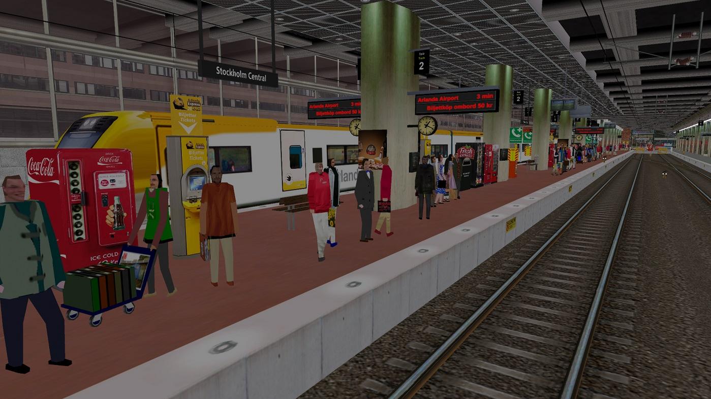 ![]() Här följer lite nytt från verkstan Idag har det jobbats på Stockholm Central, och vi kan bjuda på lite bilder Summering: samtliga plattformar spår 11-18 har bytts ut clutter finns nu på spår 11-16, fler skyltar samt objekt tilkommer Spår 8/10 har bytts ut, har nu samma tak som verkligheten Spår 1-2 (ArlandaExpressens) plattform har smalats ner för att tågen ska få plats allt i allt ca. en halv mil nya plattformar. Andra bilden är i 80 grader FOV Arbetet fortsätter imorgon Ha det bäst